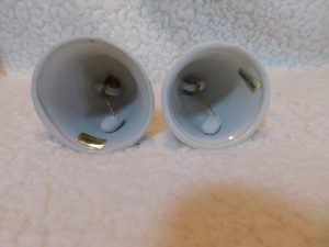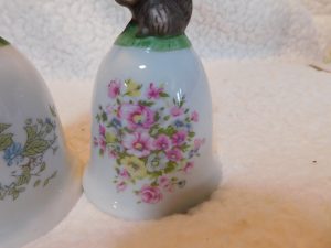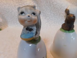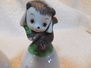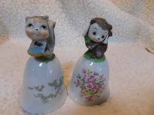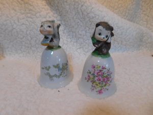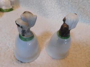 This delightful pair of porcelain bells features anthropomorphic squirrel characters. They are crafted with a glossy finish and delicate hand-painted details, making them a perfect addition for collectors of vintage animal figurines or bell enthusiasts.
